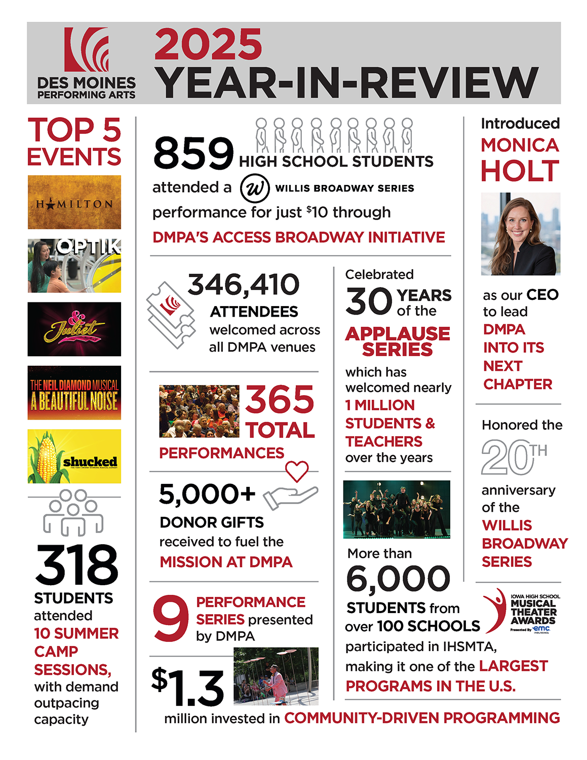 As the curtain rises on 2026, excitement fills every corner of DMPA. We’re thrilled to welcome Monica Holt as our new president and CEO – a leader passionate about creating transformative arts experiences in our community.